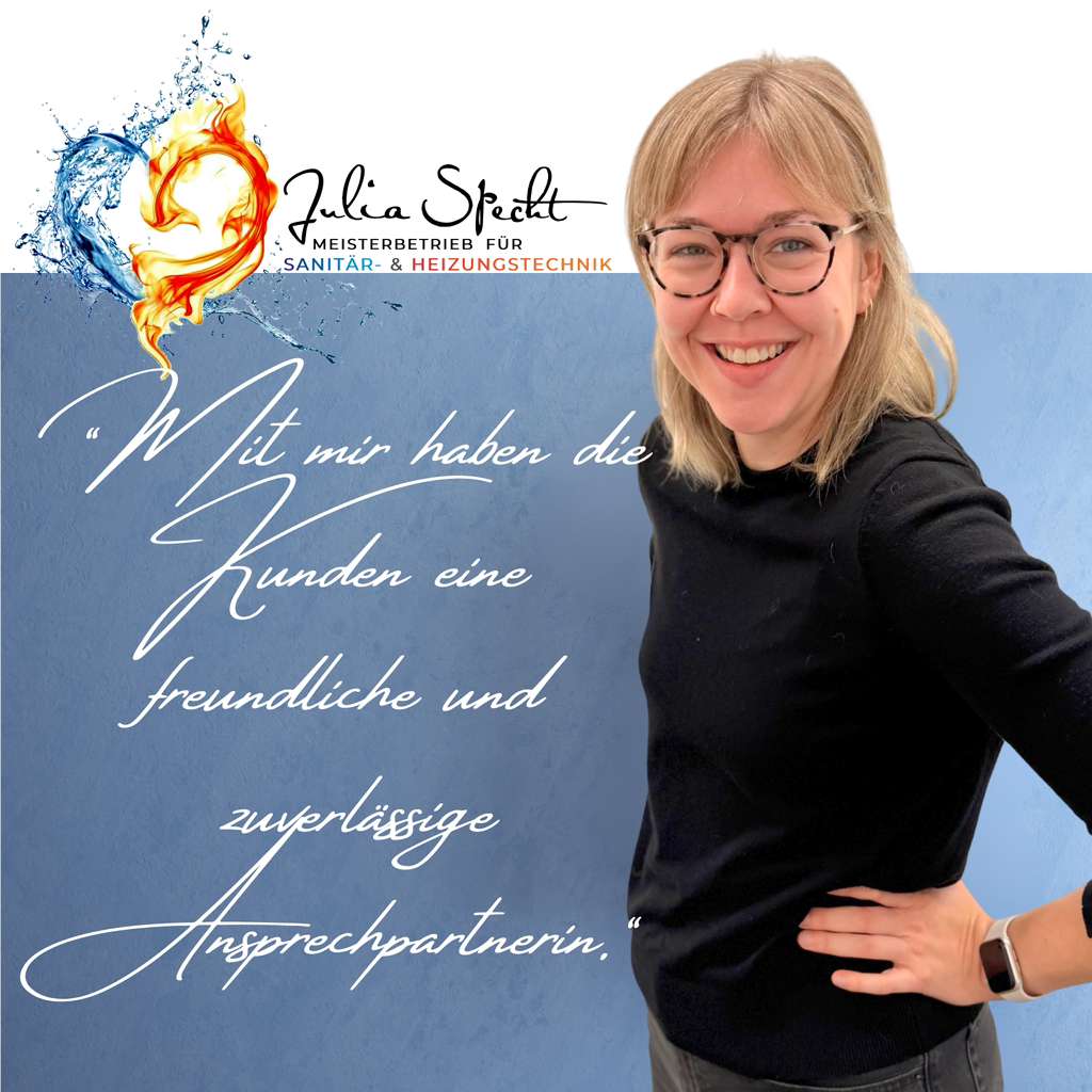 Herzlich Willkommen bei Julia Specht, Ihrem Meisterbetrieb für Sanitär- und Heizungstechnik. Wir sind ein professionelles Team, das sich auf hochwertige Dienstleistungen im Bereich der Sanitär- und Heizungsinstallationen spezialisiert hat. Mit unserer Erfahrung und unserem Know-how sind wir in der Lage, Ihre Bedürfnisse zu erfüllen. Dabei ist es gleich, ob Sie sich eine Wartung, Instandsetzung oder Modernisierung Ihrer Immobilie im Bereich unseres Fachgebietes wünschen. Durch unser Alleinstellungsmerkmal einer Betrieblichen Sozialarbeiterin als Betriebsinhaberin punkten wir bei unseren Kunden sowohl durch Erfahrung im Heizungs- und Sanitärbereich als auch auf dem Fachgebiet Betriebssozialarbeit. Unser Unternehmen vereint in Zeiten von immer größer werdenden Ansprüchen an Handwerksunternehmen und seine Mitarbeiter ein hohes Maß an Fachwissen und Engagement für unsere Kunden sowie eine besondere Art der Mitarbeiterbetreuung.